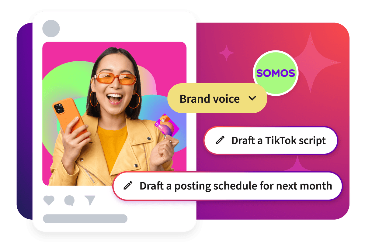 Try our all-new social media AI assistant that scours live social feeds to help you create content, analyze performance, and build campaigns based on what’s happening online right now.